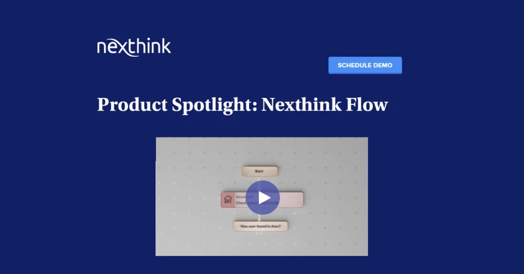 Is your team spending huge amounts of time on simple, repeat tickets? Do you have to engage expensive engineers to code automations with PowerShell, or lack the resources altogether for automation? Eliminate repetitive issues and create a proactive digital workplace with the end-to-end digital workplace orchestration offered by Nexthink Flow.