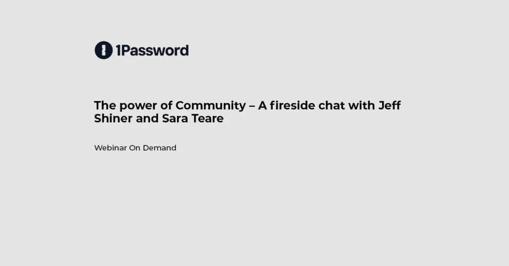 Join us for an exclusive fireside chat to celebrate the launch of the new 1Password Community! Sit down with our founder, Sara Teare, and Co-CEO, Jeff Shiner, as they share the story behind 1Password’s vibrant community and their exciting vision for the future.