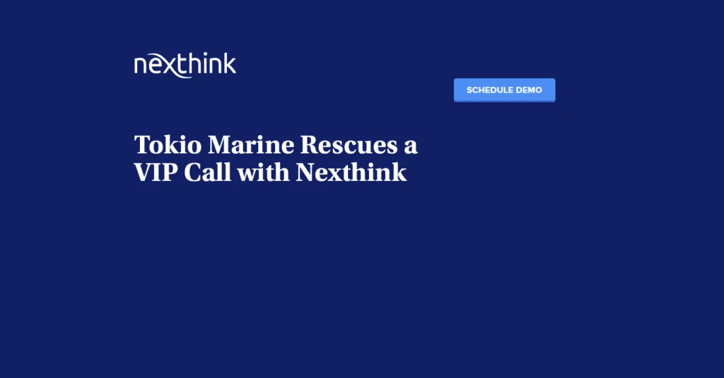 When an important executive meeting started having technical issues, the team at Tokio Marine was able to leverage Nexthink to remedy the issue in minutes. Watch now to learn how.