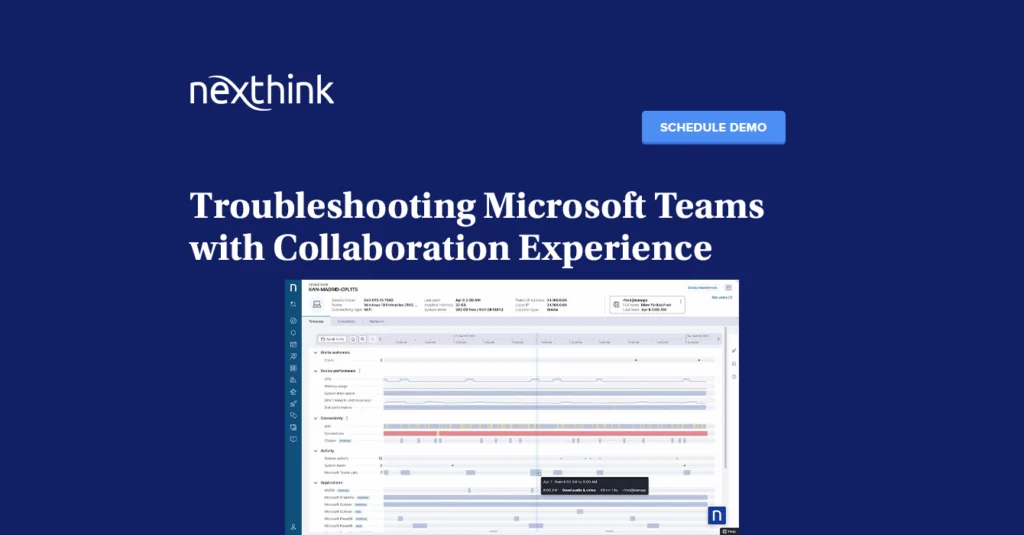 Microsoft Teams is a vital workplace application for communication and collaboration. When employees have issues with their Teams call quality, productivity can grind to a halt. Watch this product demo now to see how you can see, diagnose, and fix Teams call quality issues with Nexthink Collaboration Experience.