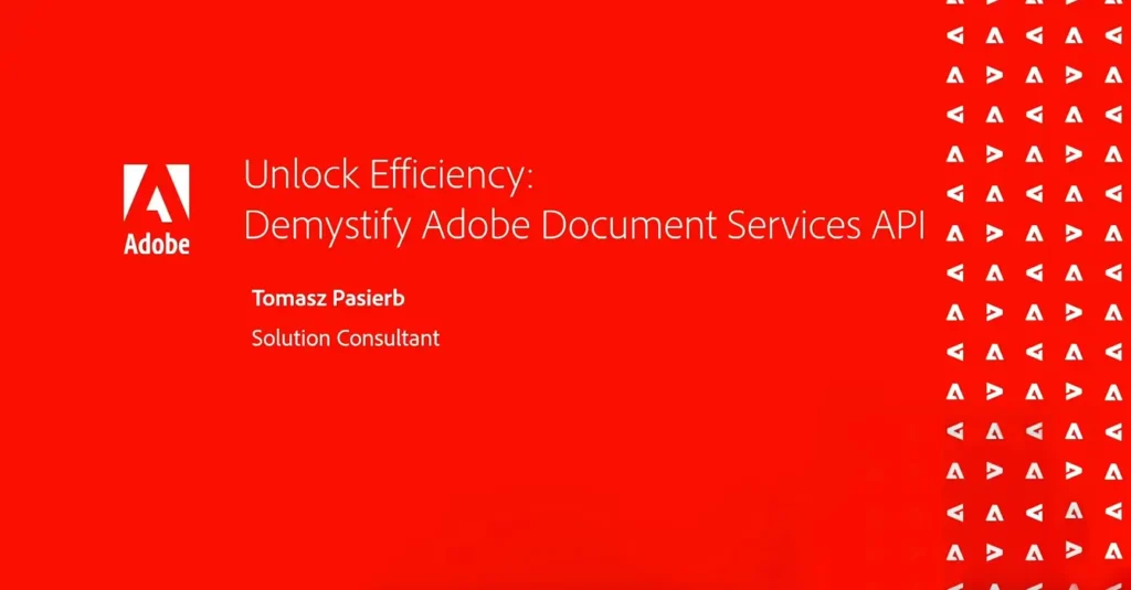 Join our on-demand webinar as we demystify Adobe Document Services API, making it accessible to all. Tomasz Pasierb and Nata Miljevic both Adobe Solutions Consultants, will simplify what an API is, explore practical use cases, and showcase how integrating this tool can revolutionise your organisation’s efficiency.